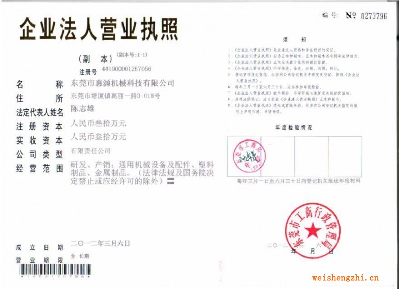| 發(fā)證機(jī)構(gòu): | 東莞市工商行政管理局 | 發(fā)證時(shí)間 : | 2012-03-06 |