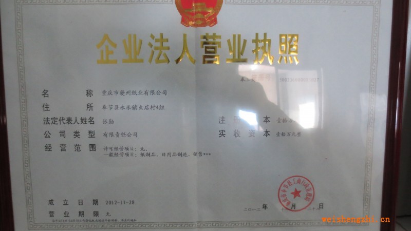 | 發(fā)證機(jī)構(gòu): | 重慶市奉節(jié)縣工商行政管理局 | 發(fā)證時(shí)間 : | 2012-11-28 |