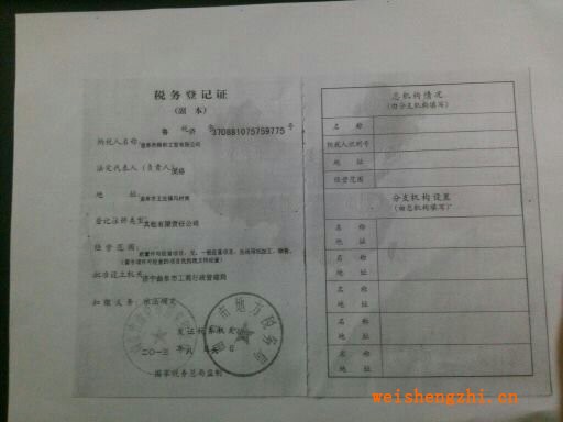 您當(dāng)前的位置:首頁(yè) » 榮譽(yù)資質(zhì) » 稅務(wù)登記證