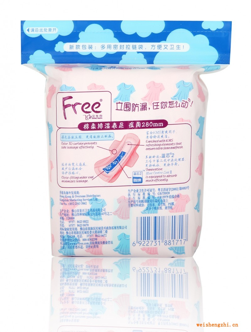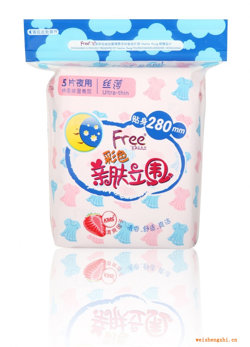 » 批發FREE 飛衛生 彩色親膚立圍夜用絲薄棉柔排溫表層衛生巾