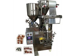 適合包裝的產品;油和辣椒,食用油和芝麻,花生碎,三種物料同時灌裝,’包裝速度快,效果好