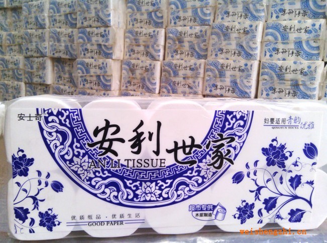 保定滿城衛生紙廠-滿城縣興凱紙制品廠-安士奇安利世家青花瓷衛生紙系列
