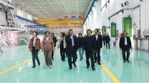 在高級文化紙生產車間現場,馬林向考察組重點展示了世界首創的“無添加”生活用紙以及天然纖維素等新材料研發創新成果。