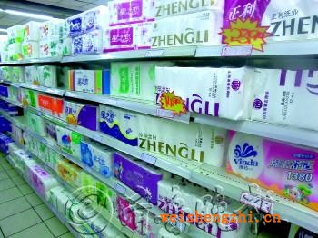 菏澤城區一百貨商店內,多款衛生紙產品正在促銷。 本報記者 陳晨 攝