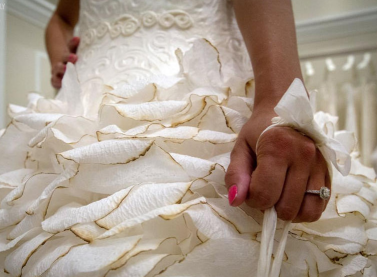 核心提示:用一張張衛生紙精心折疊、粘貼而成的衛生紙婚紗。時尚前衛的設計,裙擺以花邊裝飾,乍看上去,這些婚紗的外觀華美異常,質感就像真正的織品一樣,幾乎跟普通婚紗沒有任何區別。你過過衛生紙做的婚紗嗎?怎么樣,是不