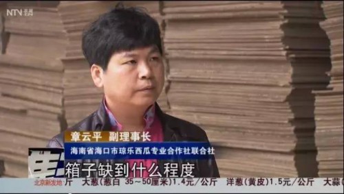 海南省海口市瓊樂西瓜專業合作社聯合社副理事長章云平:目前像我們西瓜這樣這塊,箱子缺到什么程度?簡單的說,產量平均一畝下來低六千多斤,一畝需要200多個箱子,那就是說五萬畝就一千多萬個,這樣計算,我估計缺口達到至少300多萬只。