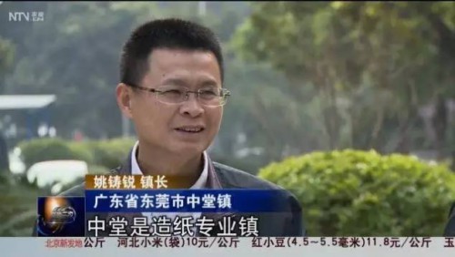 廣東省東莞市中堂鎮鎮長姚鑄銳:原來總共有25家造紙廠,我們中堂是水鄉,大部分的河污染還是比較嚴重,2015年市政府鼓勵一些比較小的造紙廠退出,我們這次總共退出了12家,現在還保留13家。