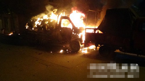 消防官兵到達現場后,只見一輛小貨車拉滿載一車紙板,停在道路中間,周圍都是過往的車輛。起火部位位于車廂上方,明火在猛烈燃燒,車頭已經燒得面目全非。消防官兵立即泡沫槍對起火點進行滅火,另一支水槍對油箱四周進行掃射冷卻。