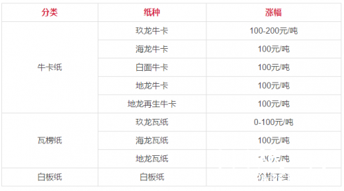 9月1日,東莞玖龍紙業宣布所有牛卡、瓦楞紙漲300元/噸,白板紙漲200元/噸,執行時間9月1日至9月10日。