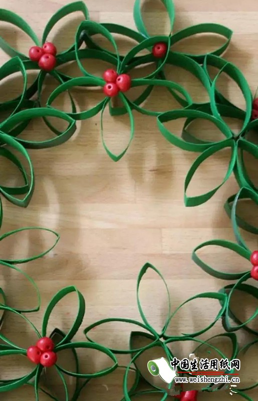 將做成的花朵拼成一個大圈和小圈,小圈與大圈錯開一點再粘起來,然后再把它們貼在墻上~