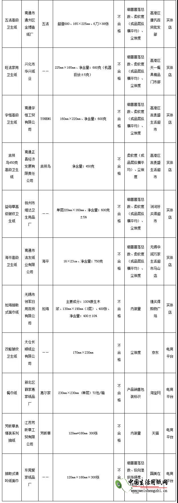 本次抽查結果顯示,紙巾紙不合格項目集中在細菌菌落總數、內裝量、塵埃度、橫向抗張指數、縱向濕抗張強度和產品銷售包裝標識等6項指標。