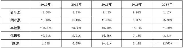 表中可以看出,木漿進口量持續增加,增加的量主要來自闊葉漿,2017年闊葉漿進口量同比增幅25.95%,創近5年新高。