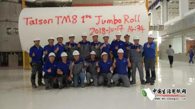 泰盛集團和福伊特集團造紙事業(yè)部于2016年第4季度牽手合作,福伊特提供4臺XcelLine衛(wèi)生紙機。目前,TM7號機已于今年7月順利開機,此次開機的TM8號機,為當時簽約項目中第2臺開機設備。福伊特的4臺XcelLine紙機將使泰盛集團每年新增24萬t生活用紙產能。