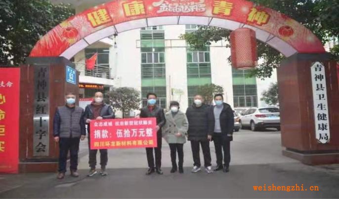2月5日,四川環龍新材料有限公司向眉山市青神縣紅十字會捐贈 50 萬元, 所捐款項將用于抗擊新型冠狀肺炎疫情。2 月 7 日,環龍集團向成都市青羊區紅十字會捐款,定向捐贈用于支持此次疫情防控工作及慰問一線防疫工作人員。