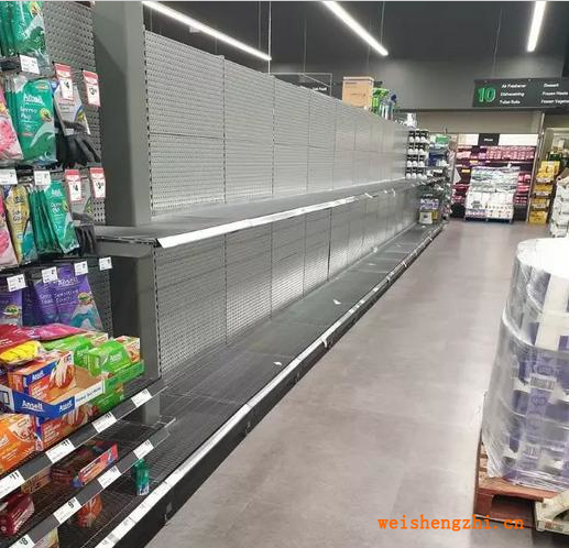 衛生紙貨架空空的照片,也向人們傳遞了“趕緊搶購”的信息。