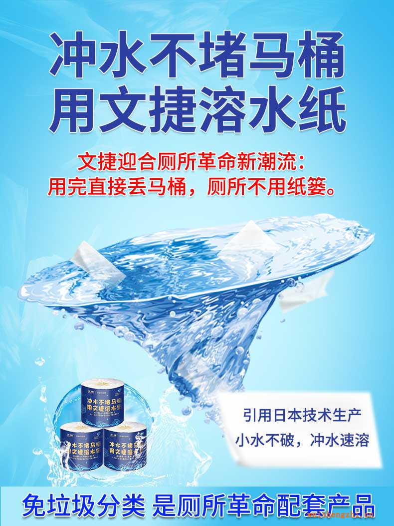 文捷溶水衛生紙水溶紙可溶水大卷紙大盤紙公用紙紙廁紙巾